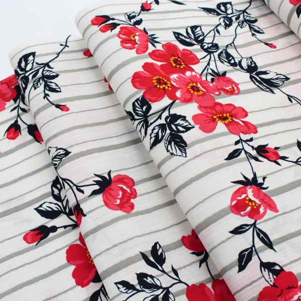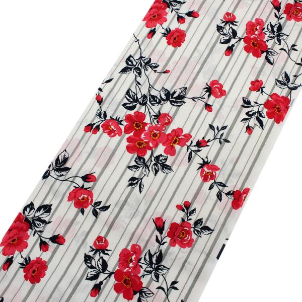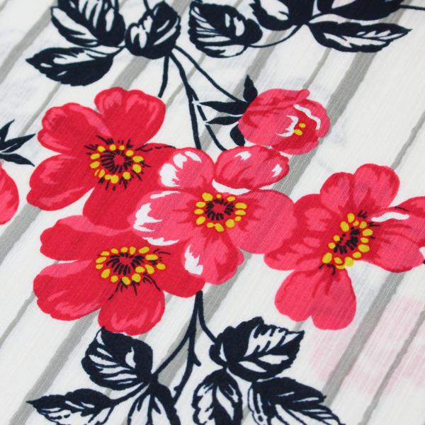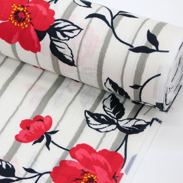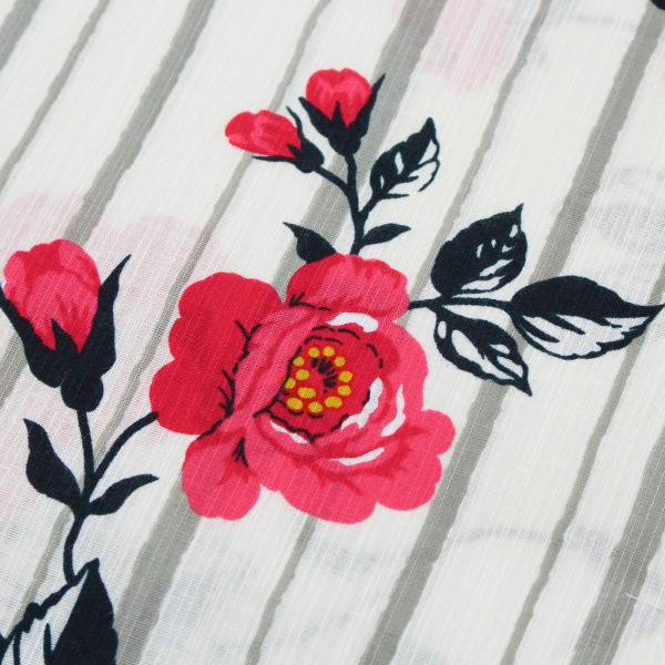 日本製 浴衣 反物 生地 教材用 レディース 白 オフホワイト 花柄 縞 女性用 ゆかた 綿 20代 30代 40代 50代 お洒落 大人っぽい 誂え 仕立て