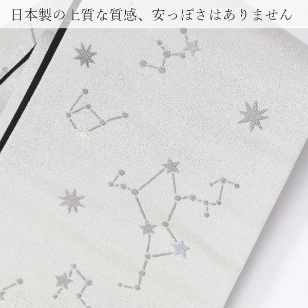 半幅帯 長尺 日本製 小袋 半巾帯 シルバーグレー きらきらラメ 星座 レディース 女性用 着物 浴衣 小紋 紬 袴 カジュアル 帯 洒落帯 おしゃれ 普段着 デニム着物