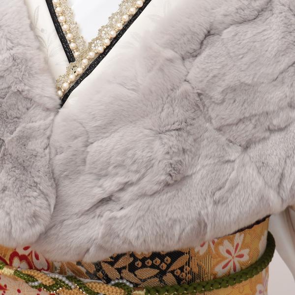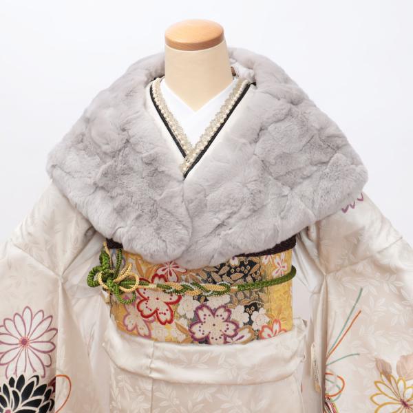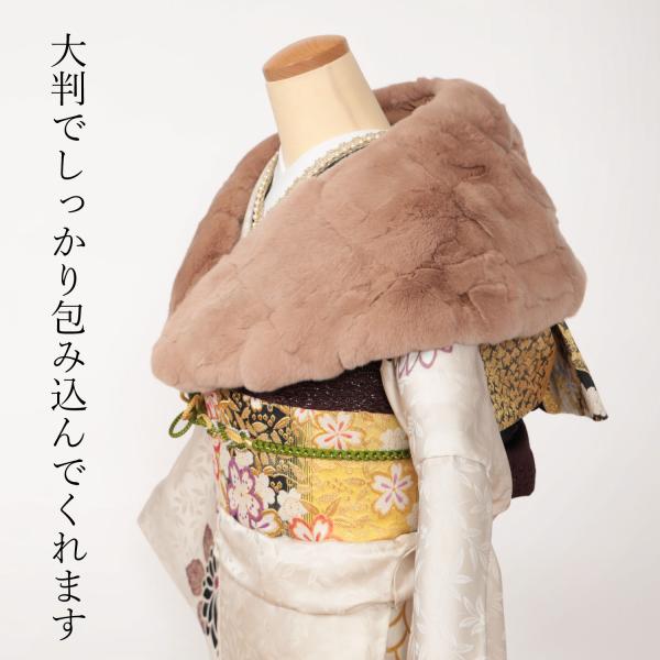 成人式 ショール レッキス うさぎファー 振袖 ストール ベージュ グレー くすみ 毛皮 大きい 大判 和装用ショール ラビット おしゃれ 防寒 ふわふわ