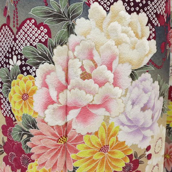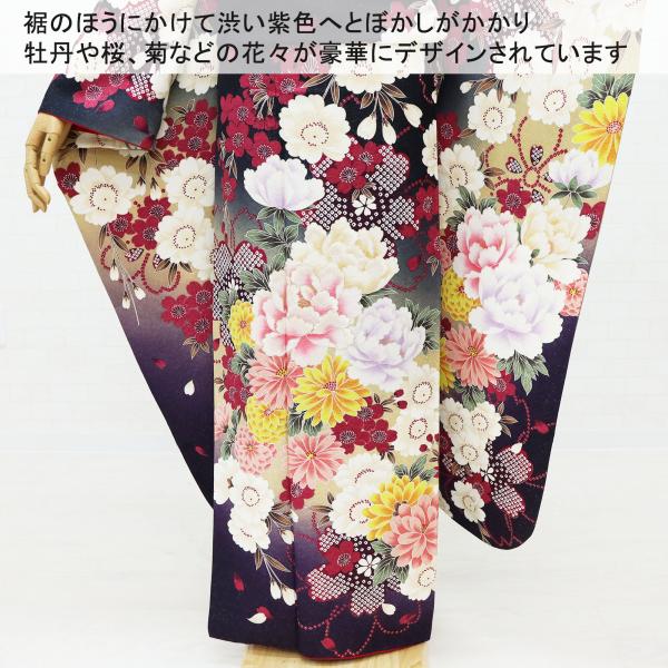 振袖 フルセット 中古品販売 トールサイズ 黒 古典 和モダン ぼかし 豪華 高品質 着物 在庫処分 正絹 成人式 結婚式 着付け練習