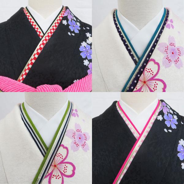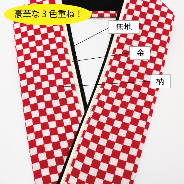 重ね襟 3色 伊達襟 3重 重ね衿 4way 振袖 袴 柄物 市松 ストライプ 縞 水玉 ドット 菱型 赤 ピンク 紫 緑 黒 白 紺 ターコイズ 成人式 卒業式