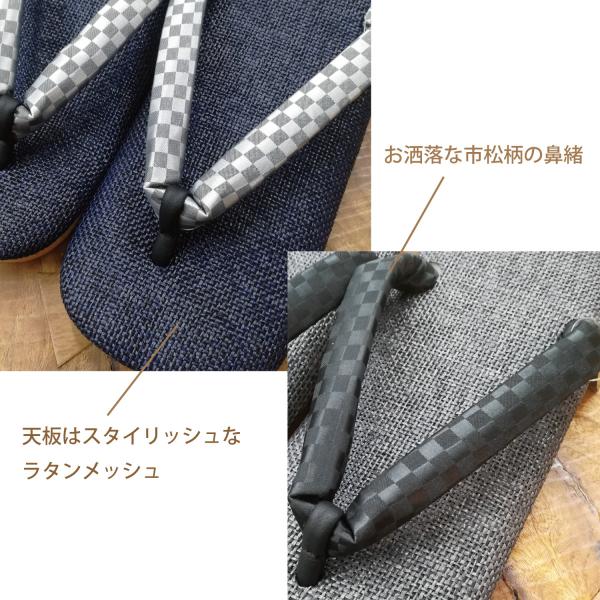 おしゃれな市松柄の鼻緒のメンズ用雪駄です。