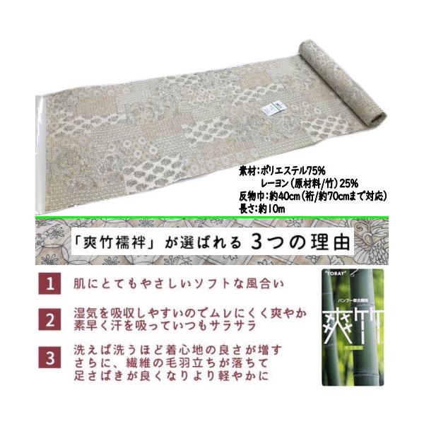 長襦袢 東レ 爽竹 反物 洗える長襦袢 更紗風文様 バンブー繊維 吸湿発散性 東レ爽竹 10m 長じゅばん 襦袢地 未仕立て 和服 着物 和裁 単品 東レシルック