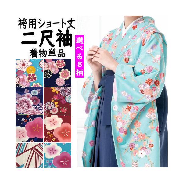 二尺袖きもの 袴用きもの ショート丈 卒業式 洗えるきもの 8柄 古典柄 小振袖 化繊 ポリエステル 袴姿 女性用 フリーサイズ レディース 単品 身丈109cm 購入