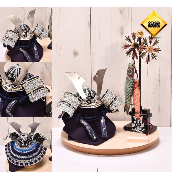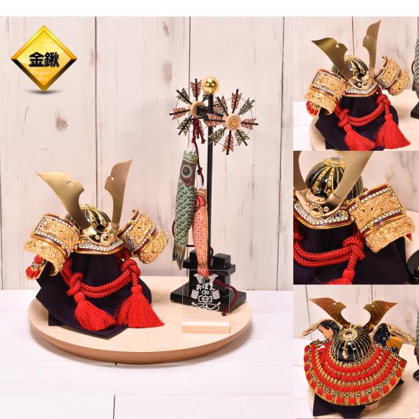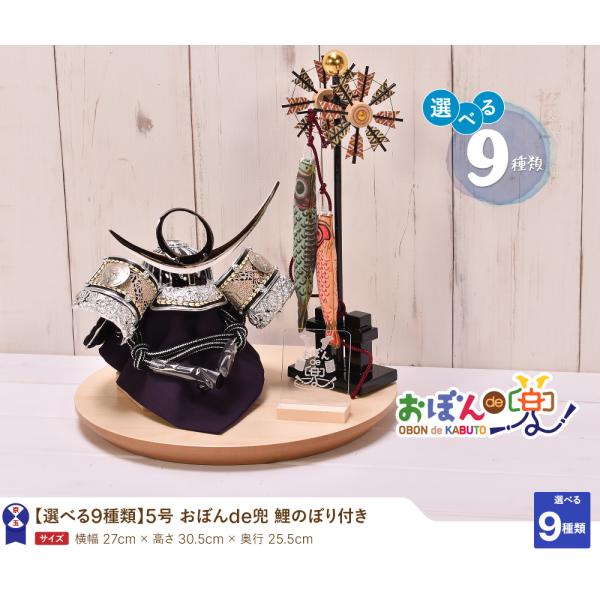 五月人形 コンパクト おしゃれ【選べる9種類】おぼんde兜 鯉のぼり付 5号 名将兜(伊達・上杉・徳川・織田・直江・真田・豊臣・金鍬・銀鍬)