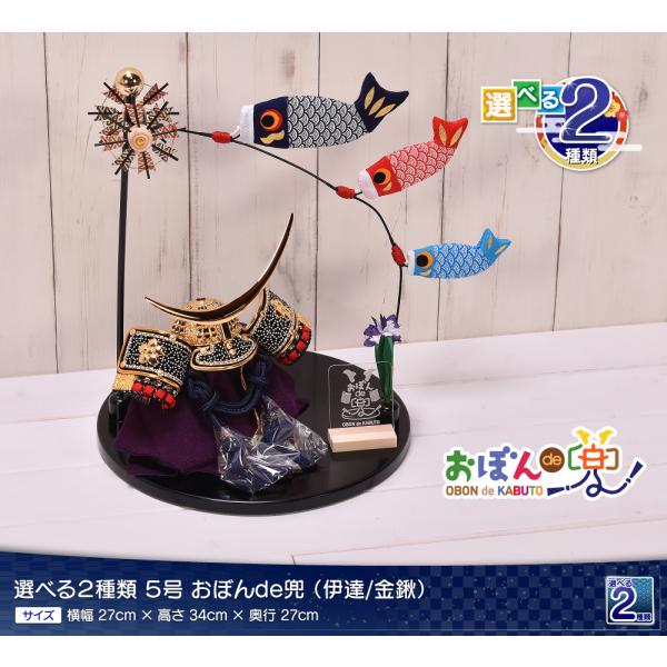 五月人形 コンパクト おしゃれ【選べる2種類】おぼんde兜 鯉のぼり/菖蒲 5号(伊達・金鍬)