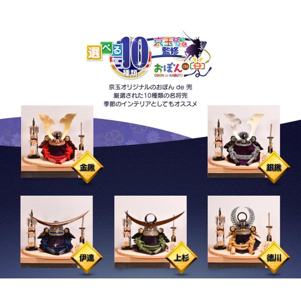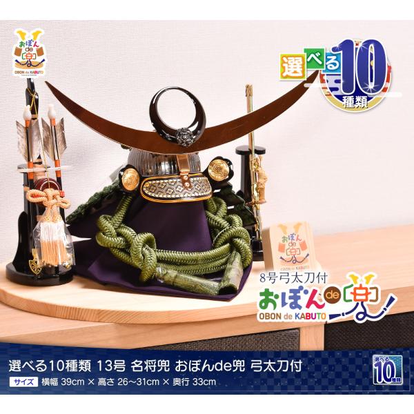五月人形 コンパクト おしゃれ【選べる10種類】おぼんde兜 弓太刀付 13号 名将兜(伊達・上杉・徳川・織田・直江・真田・武田・豊臣・金鍬・銀鍬)