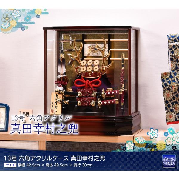 五月人形 六角花梨塗 真田幸村公 間口46cm 五月人形 ケース飾り 兜ケース入り飾り 5月人形 陣羽織・写真立オルゴール付 【送料無料】