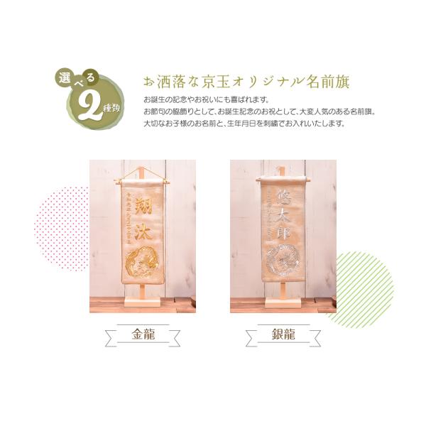 お節句の脇飾りとして、お誕生記念のお祝いとして近年人気の名前旗。