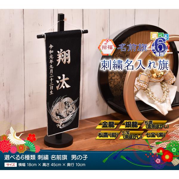 名前旗 刺繍 男の子【選べる6種類】五月人形 名前旗(中) 刺繍 男の子 刺繍名入れ 高さ45cm【送料無料】