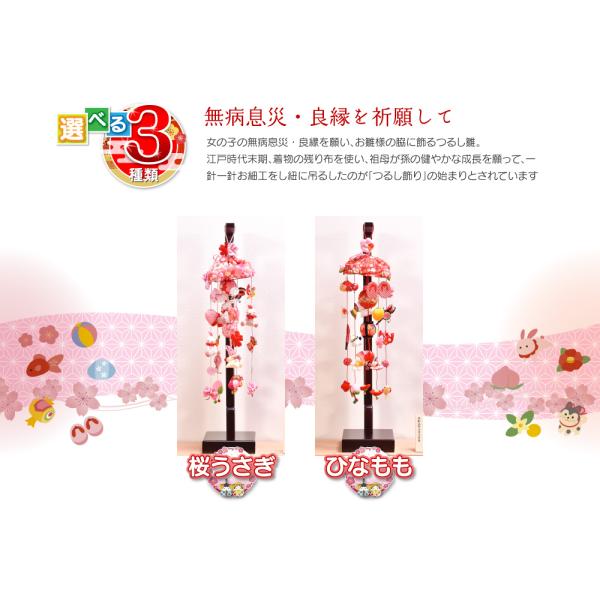 つるし雛 つるし飾り 選べるつるし雛(小)桜うさぎ/ひなもも 名入り木札付 高さ65cm 雛人形 コンパクト ひな人形 送料無料