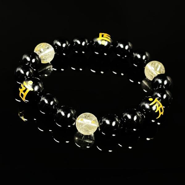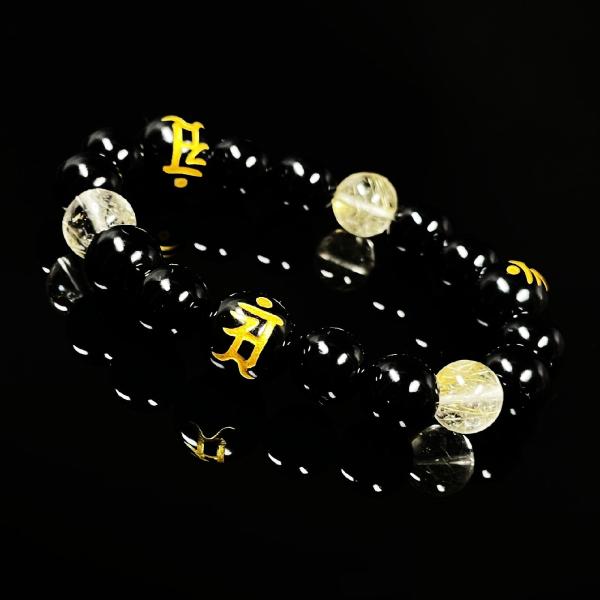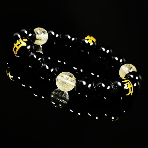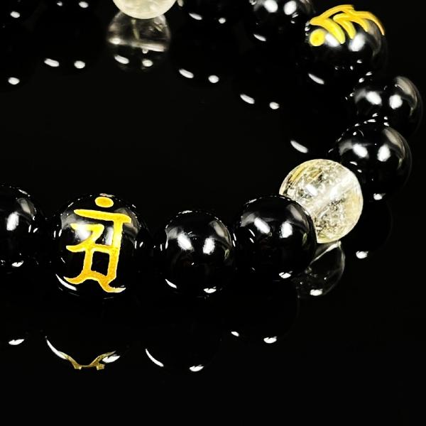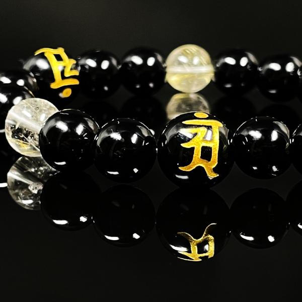 天然石ブレスレット をサポートする数珠 12ミリ 10ミリ 守護梵字オニキス ゴールドルチル 選べる梵字 金運