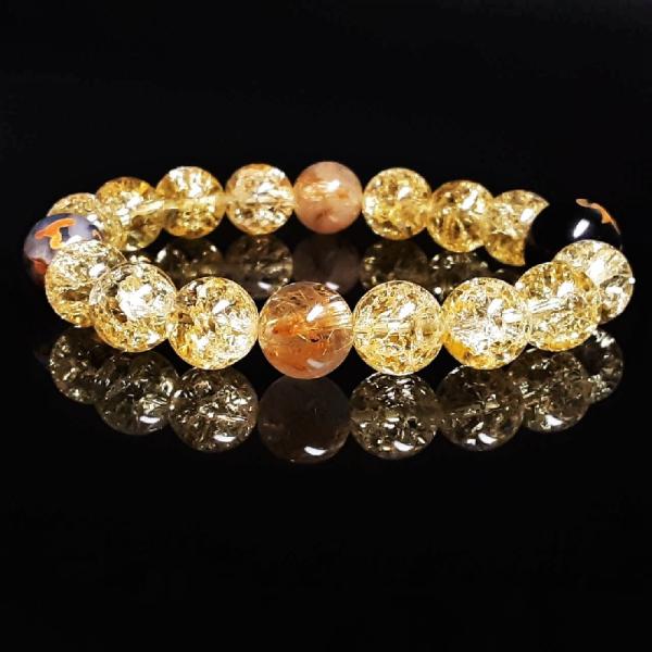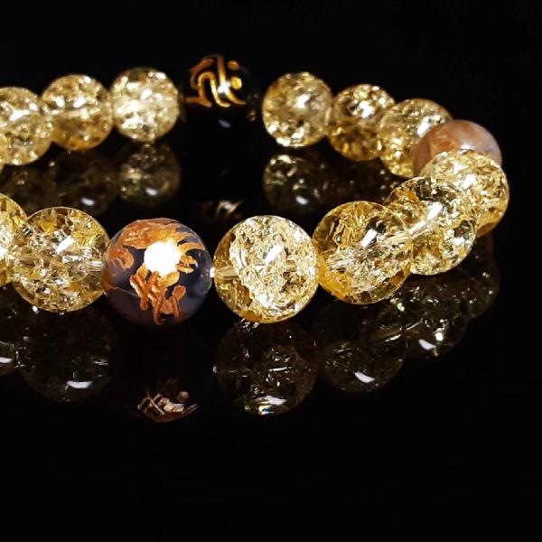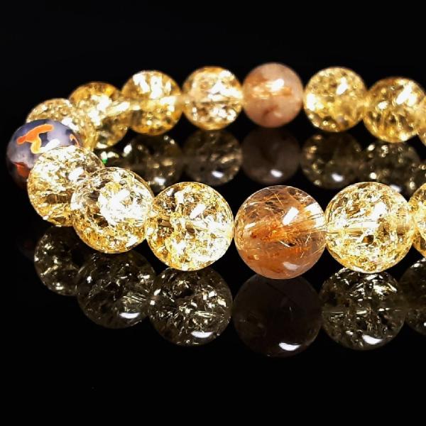 天然石ブレスレット 龍神様の力を 12ミリ 風水神 皇帝龍 本水晶 シトリンクラック ゴールドルチル 開運 お守り Ryub47