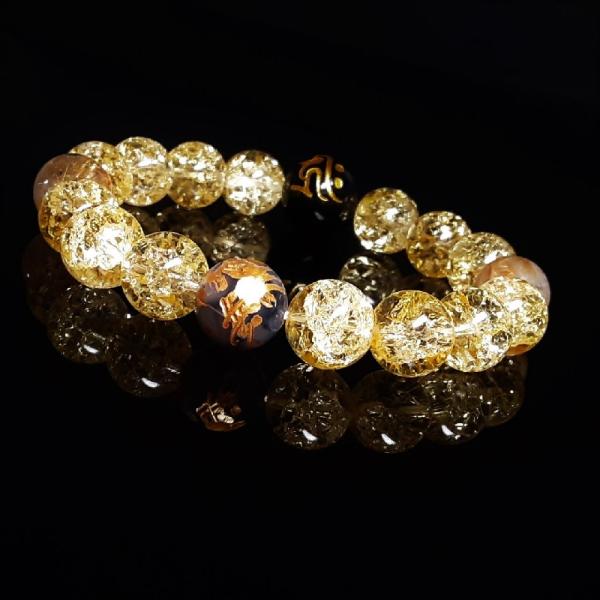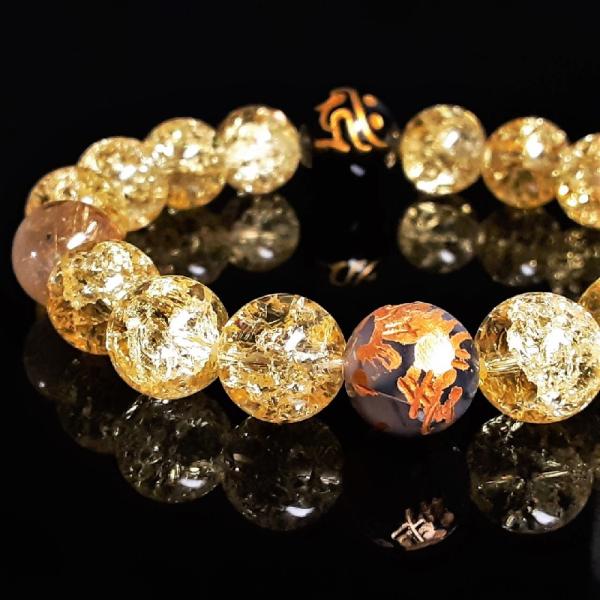 ◇守護梵字オニキスと皇帝龍ドラゴンアゲート、シトリンクラックとゴールドルチルの相性抜群コンビを組み合わせた、最強の天然石ブレスレットです◇