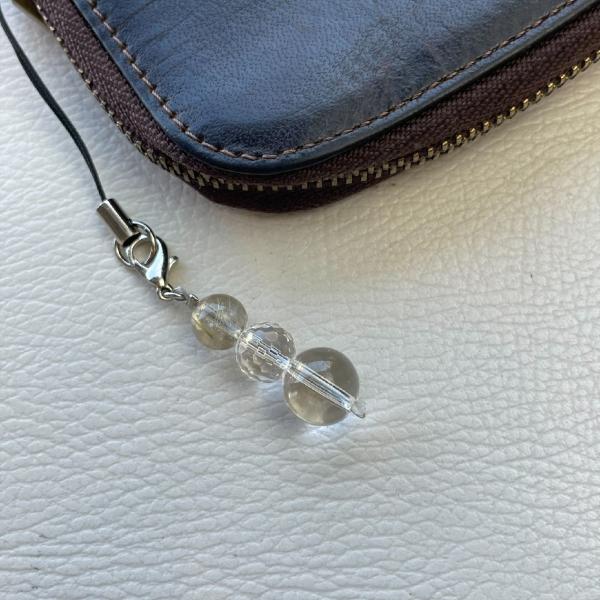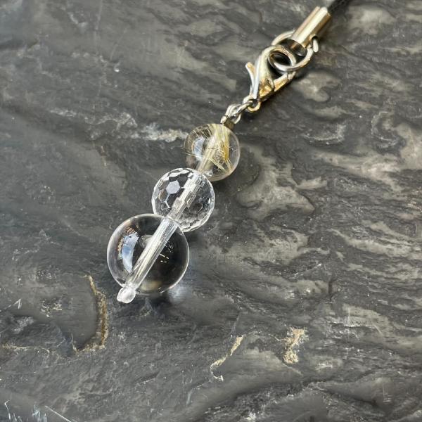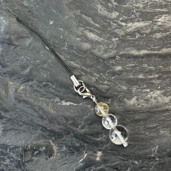 天然石 4月生まれのお守りチャーム本水晶クリスタル ゴールドルチル 128 面カット水晶 ストラップ付 S1 送料無料 京海堂