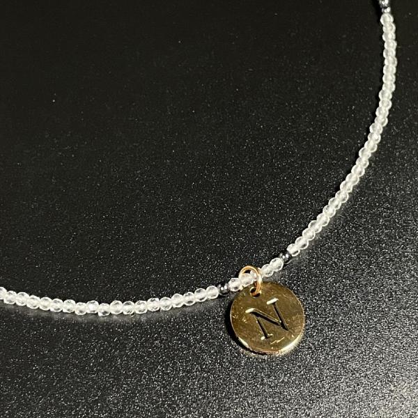 天然石 ネックレス トップのイニシャルを選べます 鉱石 テラヘルツ カットクリスタル 磁気 TBni2金属アレルギー対応