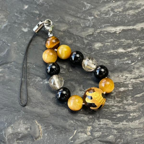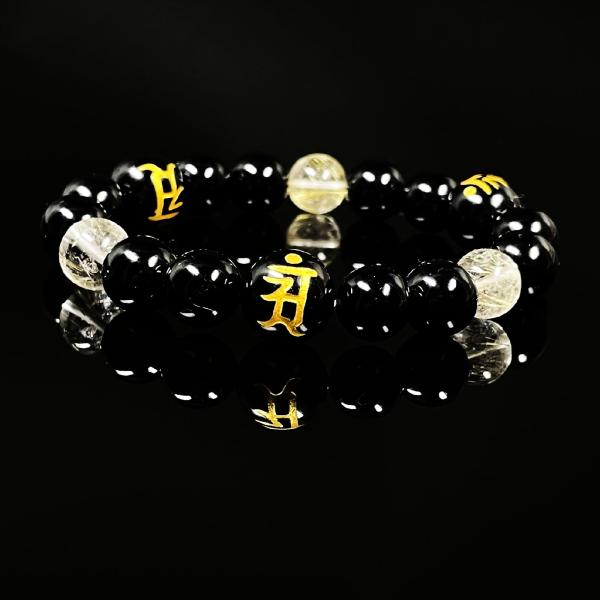 天然石ブレスレット をサポートする数珠 12ミリ 10ミリ 守護梵字オニキス ゴールドルチル 選べる梵字 金運