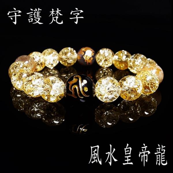天然石ブレスレット 龍神様の力を 12ミリ 風水神 皇帝龍 本水晶 シトリンクラック ゴールドルチル 開運 お守り Ryub47