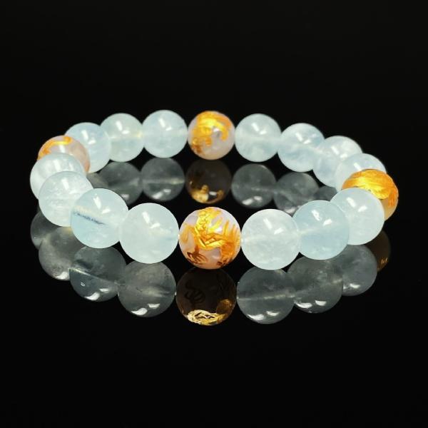 天然石ブレスレット 【四神獣 開運祭】 幸運を招き寄せる 10ミリ 四神獣ドラゴンアゲート アクアマリン 3月 誕生石 結婚運 sisin28 / 京海堂
