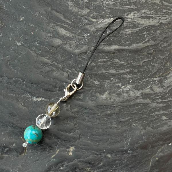 天然石 12月生まれのお守りチャームターコイズ ゴールドルチル 128 面カット水晶 ストラップ付 T3