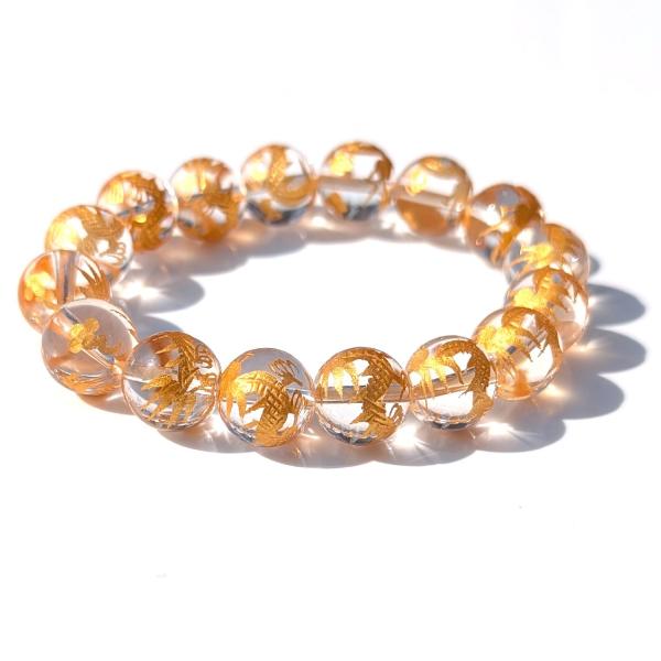 天然石ブレスレット 相性抜群 12ミリ 金彫皇帝龍本水晶 ゴールデンタイガーアイ シトリンクラック ゴールドルチルRyub9 浄化発送 京海堂