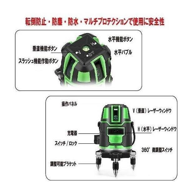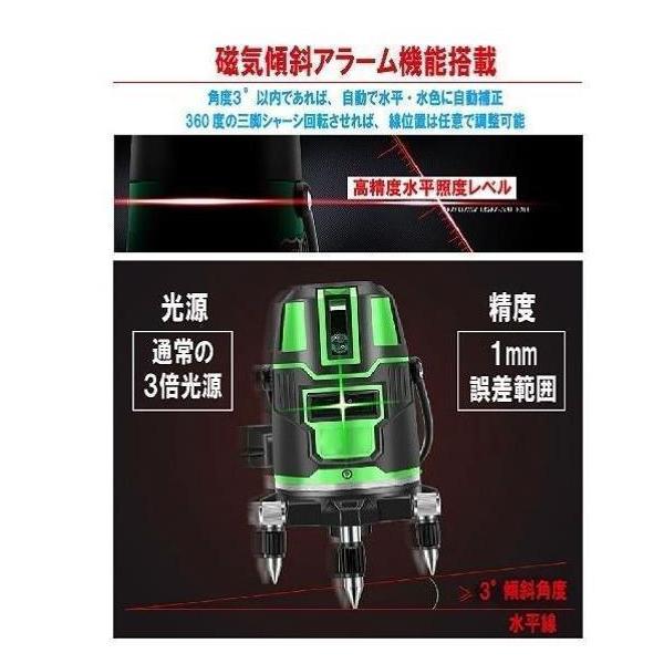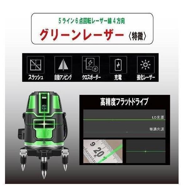 5ライン6点 グリーンレーザー墨出し器/墨出器/墨出し機/水平器測定器/墨だし器/水準器/自動補正機能/ 高輝度 高精度/ 受光器付き