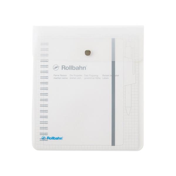滑らかな手触りのPVC(塩ビ)素材。シリーズでも人気の高い「ロルバーンポケット付メモL」に専用の下敷きをセットし、ペンを差し込んだ状態でぴったりと収納できます。前面にさりげなく入ったロゴがアクセント。ホックで開閉するエンベロップ型で、逆さにしても中の小物が落ちず、消しゴムやクリップなどのデスクトップ文具も収納できます。