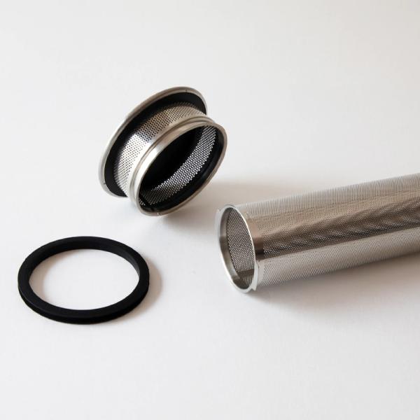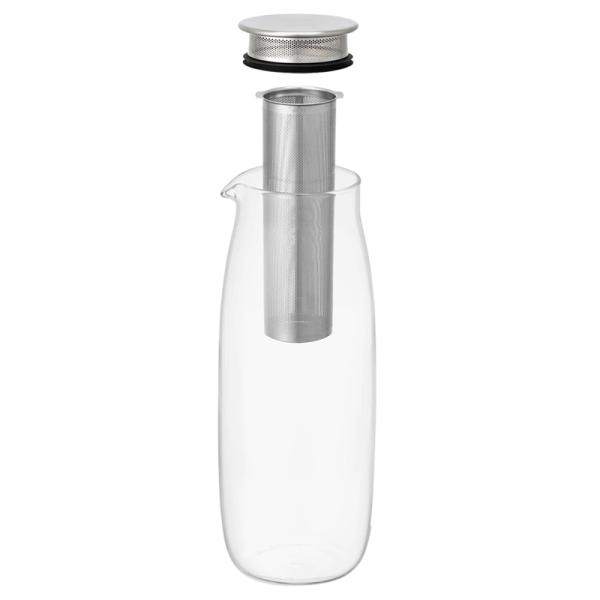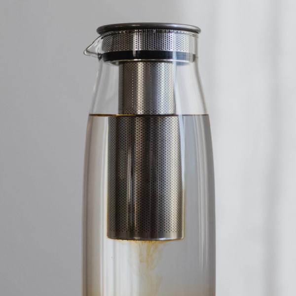 細かいメッシュストレーナーに茶葉を入れて水を注ぐだけで、水出しのアイスティーを手軽に作ることができます。食洗器の使用が可能です。
