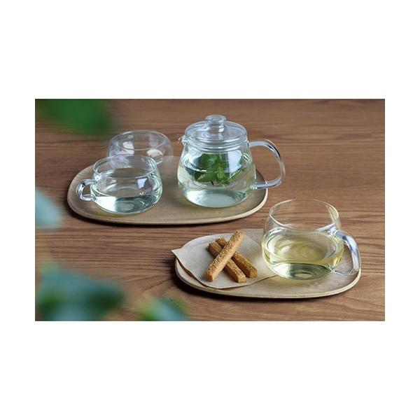 キントーのUNITEA(ユニティー)シリーズのノンスリップトレイ。UNITEAのティーポットやカップと組み合わせることで、トレイの有機的でおおらかなフォルムが引き立ち、リラックスしたティータイムを演出します。表面にはノンスリップ加工が施されているため、安定してものを運ぶことができます。