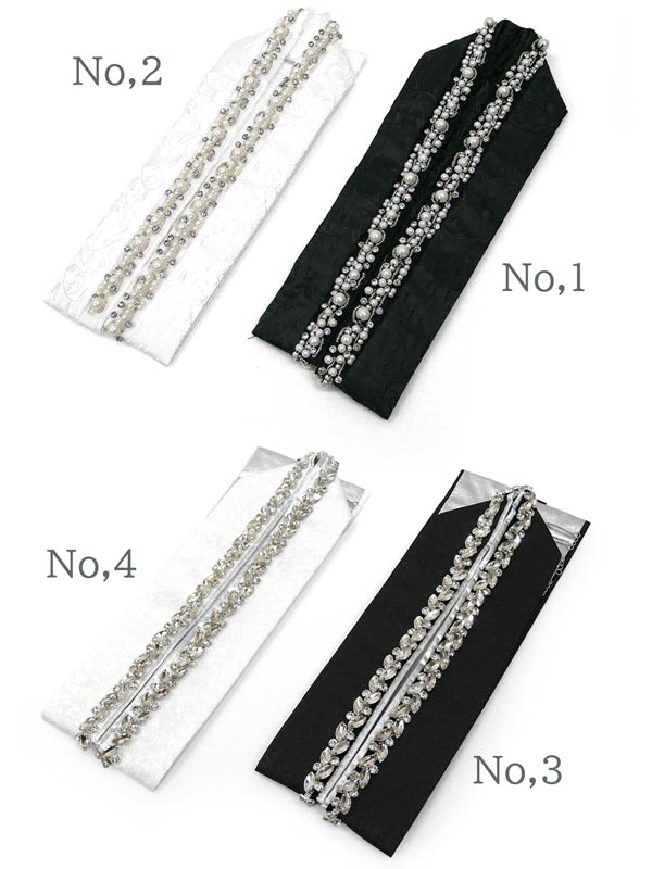 No,3、No,4は地紋入りの衿に大き目マーキュリーカットとシングルカットの2種のラインストーンで飾られております