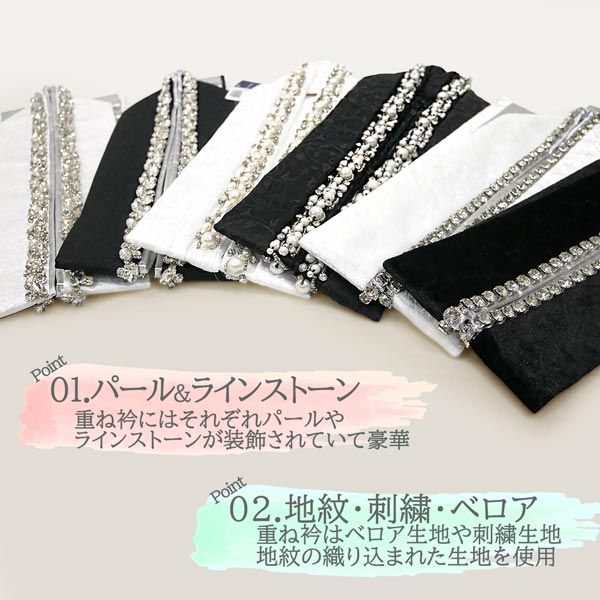 重ね衿 パールビーズ クリスタルガラス 地紋 取り付けピン付き 日本製 e-048 振袖 訪問着 レース着物 成人式 重ねえり
