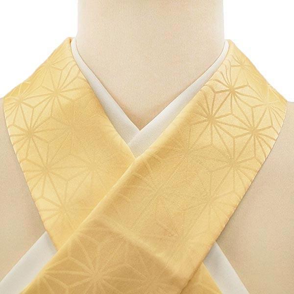 正絹 重ね衿 伊達衿 地紋織り e-292 麻の葉文様 淡黄色 クリーム色 メール便対応