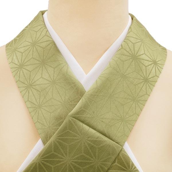 正絹 重ね衿 伊達衿 地紋織り e-293 麻の葉文様 緑 グリーン メール便対応