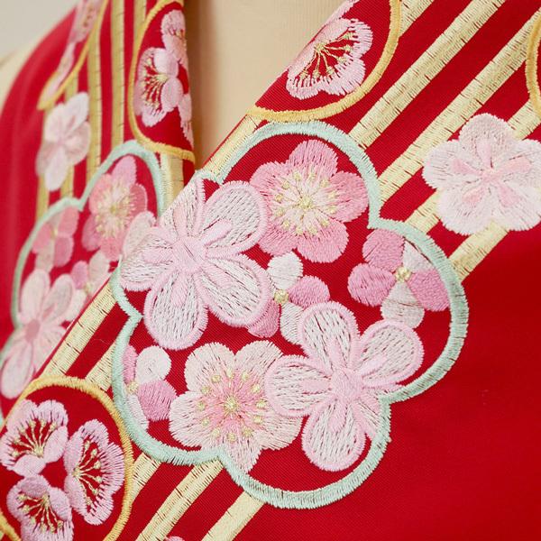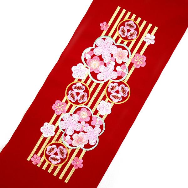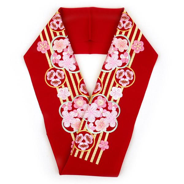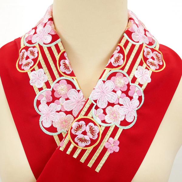 振袖用 刺繍 半衿 he-003 赤 レッド 梅 刺繍入り 振袖 成人式 結婚式 半襟 半エリ 半えり 緑 振袖