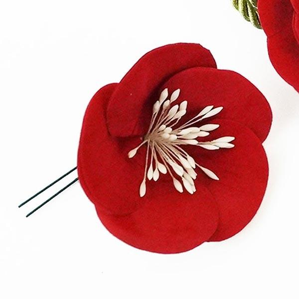 <セール> 8.990円→5.830円 髪飾り 2点セット kk-072 椿 赤 青 白 つまみ細工 花飾り 花かんざし ヘアアクセサリー 成人式 振袖 卒業式