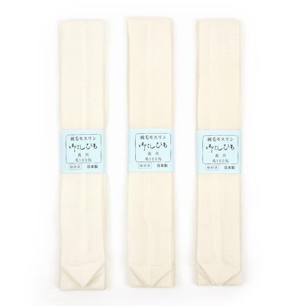 長尺 こしひも 3本セット m-006 日本製 ホワイト 純毛モスリン 白 羊毛 毛100% メール便対応 ロング 腰紐 腰ひも