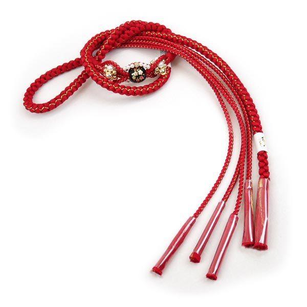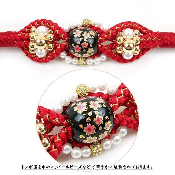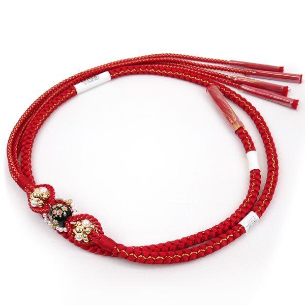 振袖用 正絹 飾り帯締め oj-040 とんぼ玉 手組み 帯締 帯じめ 帯〆 ビーズ 飾り 絹 桜 振袖 成人式 赤 レッド
