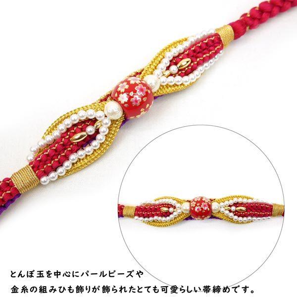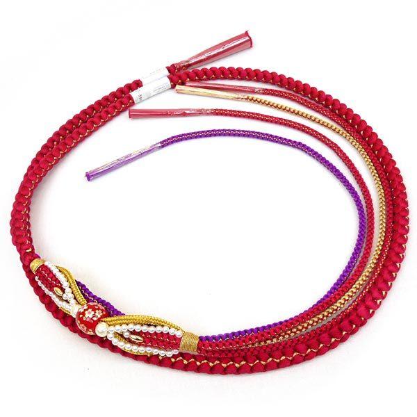 振袖用 正絹 飾り帯締め oj-072 赤 レッド とんぼ玉 手組み 帯締 帯じめ 帯〆 ビーズ 飾り 絹 桜 振袖 成人式