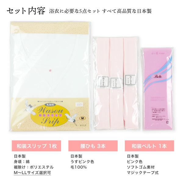 浴衣用 肌着・小物 5点セット wk-107 日本製 浴衣 ゆかた 着付け 和装スリップ 和装下着 腰ひも マジックベルト 和装ベルト