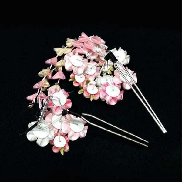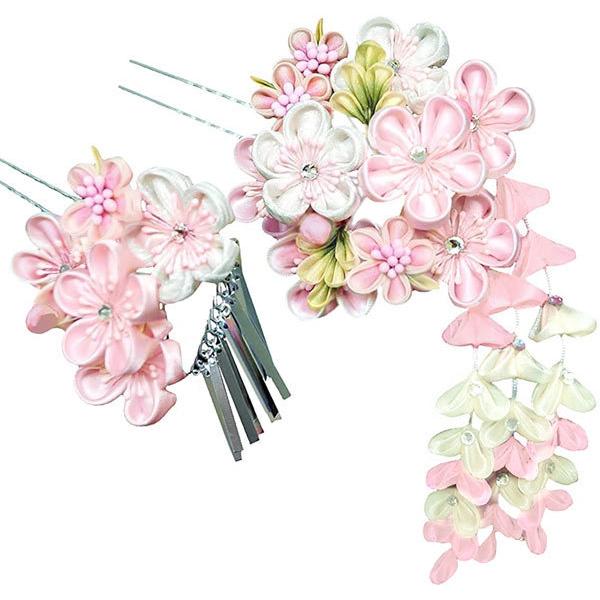 髪飾り2点セット wk-279(226) かんざし つまみ細工 成人式振袖 ピンク 浴衣