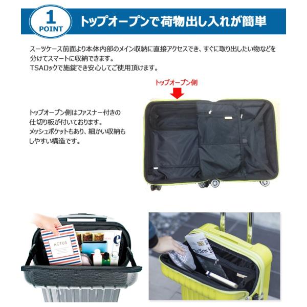 機内持ち込み スーツケース Sサイズ キャリーケース フロントオープン 軽量 軽い 静音 メンズ レディース ビジネス 旅行 出張 キャリーバッグ アクタス トップス