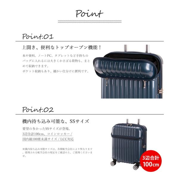 スーツケース キャリーケース フロントオープン 機内持ち込み SSサイズ コインロッカー LCC メンズ レディース 軽量 軽い 静音 1年保証 アクタス トップス