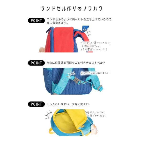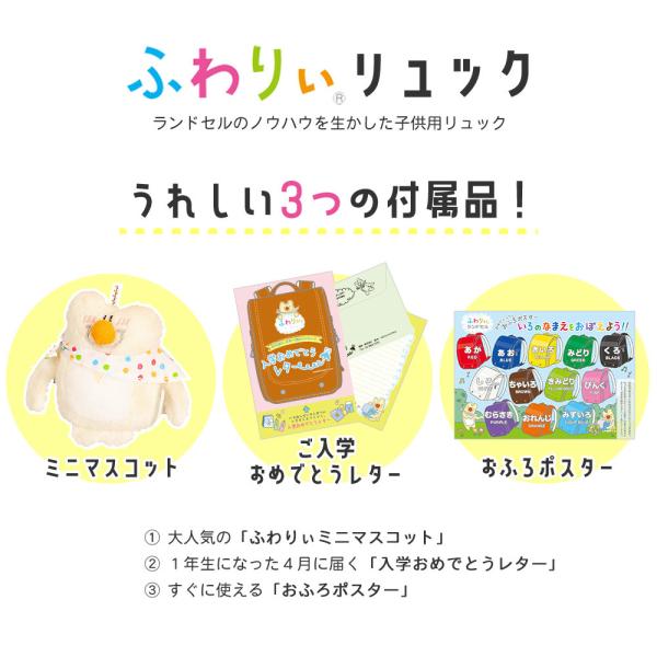ふわりぃリュック かわいいマスコット付き 男女共用 通園バック 保育園リュック 登園 幼稚園 バッグパック ゴム付きチェストベルト ランドセルの協和
