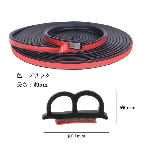 ドア モール 車 風切り音防止 静音 黒5m すきま風 音 テープ デッドニング ドア リア 簡単 カー用品 外装 パーツ おしゃれ 気密性