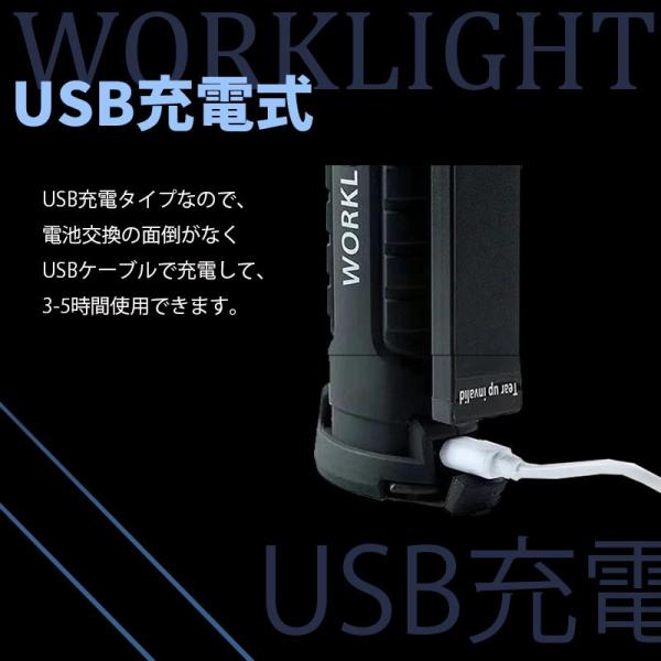 ハンディライト USB 充電 懐中電灯 作業灯 COB ハンドライト マグネット 夜間作業 アウトドア バッテリー内蔵 LED ライト jd-ca036
