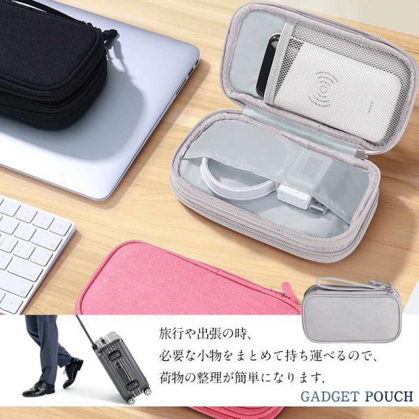 ガジェットポーチ 小物入れ 充電器ポーチ トラベルポーチ モバイル用品収納ポーチ 小物入れポーチ 2層収納バッグ 小物入れ 軽量 トラベルポーチ 旅行 出張