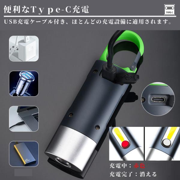 LED 懐中電灯 USB充電式 コンパクト 防水 強力 小型 ライト COB ハンディライト typeーC USB充電