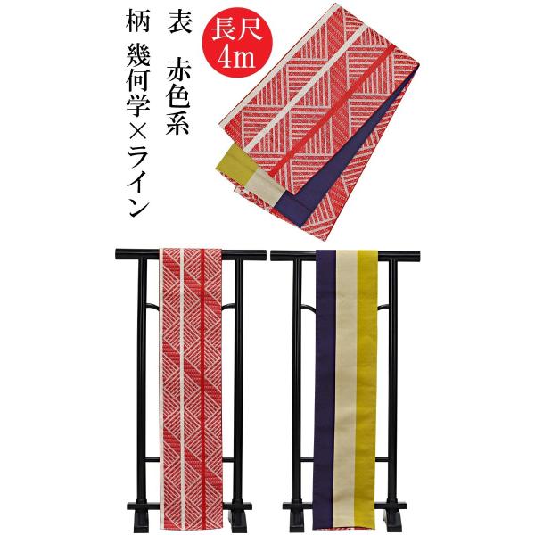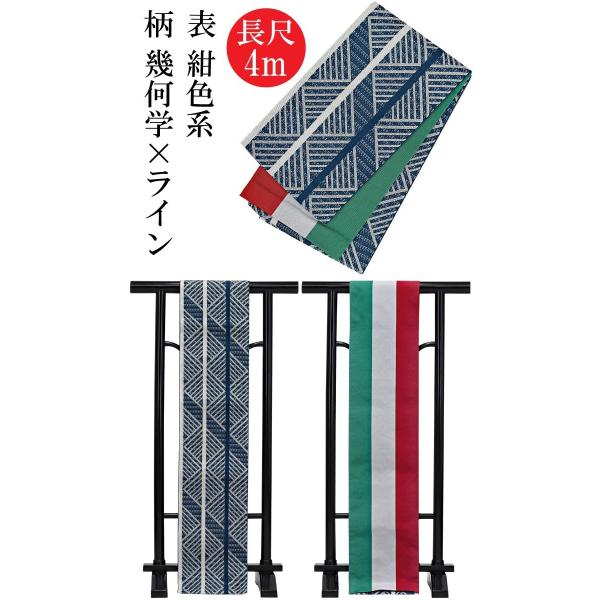 半幅帯 夏あそび 5色 幾何学 縞 ライン リバーシブル 小袋帯 ロングサイズ 4m 長尺 浴衣 着物 和装小物 ブランド ポリエステル 日本製N0680