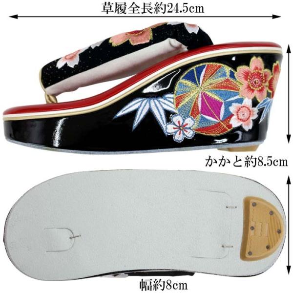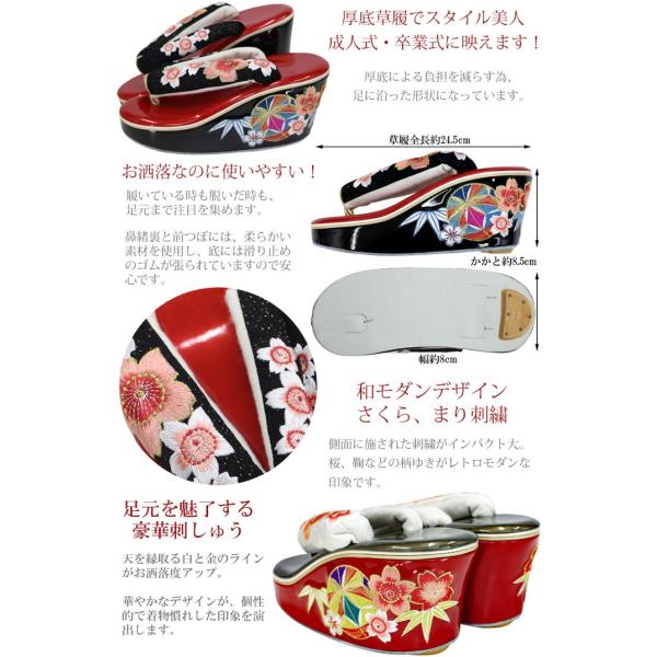 振袖用 草履 厚底 ヒール 単品 桜鞠 刺繍鼻緒 lサイズ 24.5cm ハイクラス 選べる2色 赤黒色 白ブロンズN0896