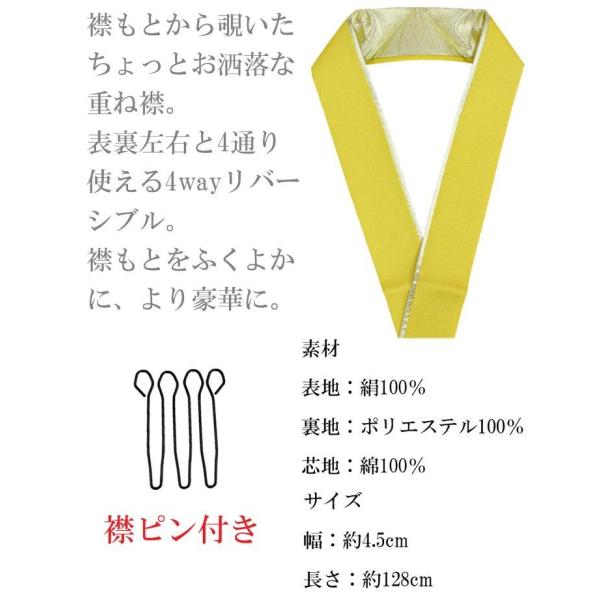 重ね衿 伊達衿 正絹 表絹100% ラメ 4way ピンク オフホワイト イエロー 振袖 着物 礼装 全6色 日本製N0956